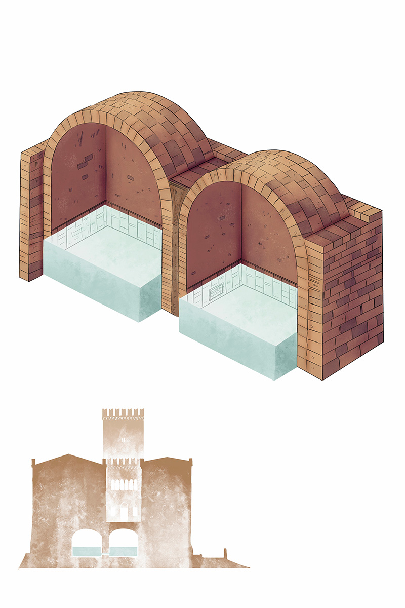 Proprio sotto le terrazze, custodite dalla terra e dalla pietra, si trovano le sette antiche cisterne del Castello di Tabiano. Invisibili a un primo sguardo, costituiscono invece una delle infrastrutture storiche più ingegnose dell’intero complesso.